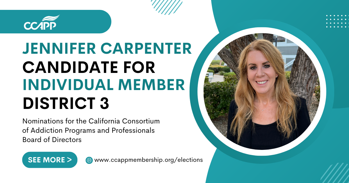 I am honored to be nominated for election to the CCAPP Membership Board of Directors. For more than thirteen years, I have worked to strengthen California’s behavioral health and substance use disorder (SUD) systems through leadership, workforce innovation, and a deep commitment to equity and access to care.